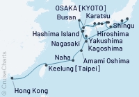 Osaka → Amami Island → Okinawa (Naha) → Ishigaki Island → Keelung (Taipei) → Hong Kong → Ha Long Bay → Da Nang → Chan May (Hue) → Nha Rong (Ho Chi Minh City) → Sihanoukville → Ko Kood → Bangkok